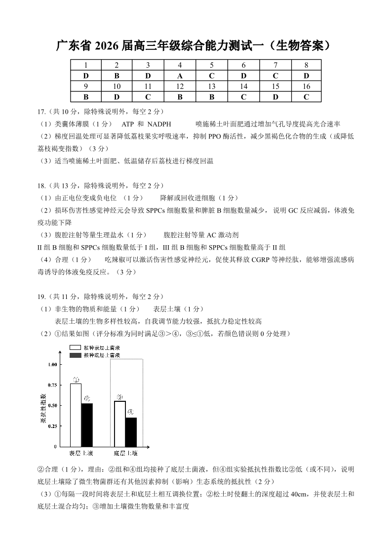 高三生物答案--广东省光大联考2026届高三上学期综合能力测试(一)