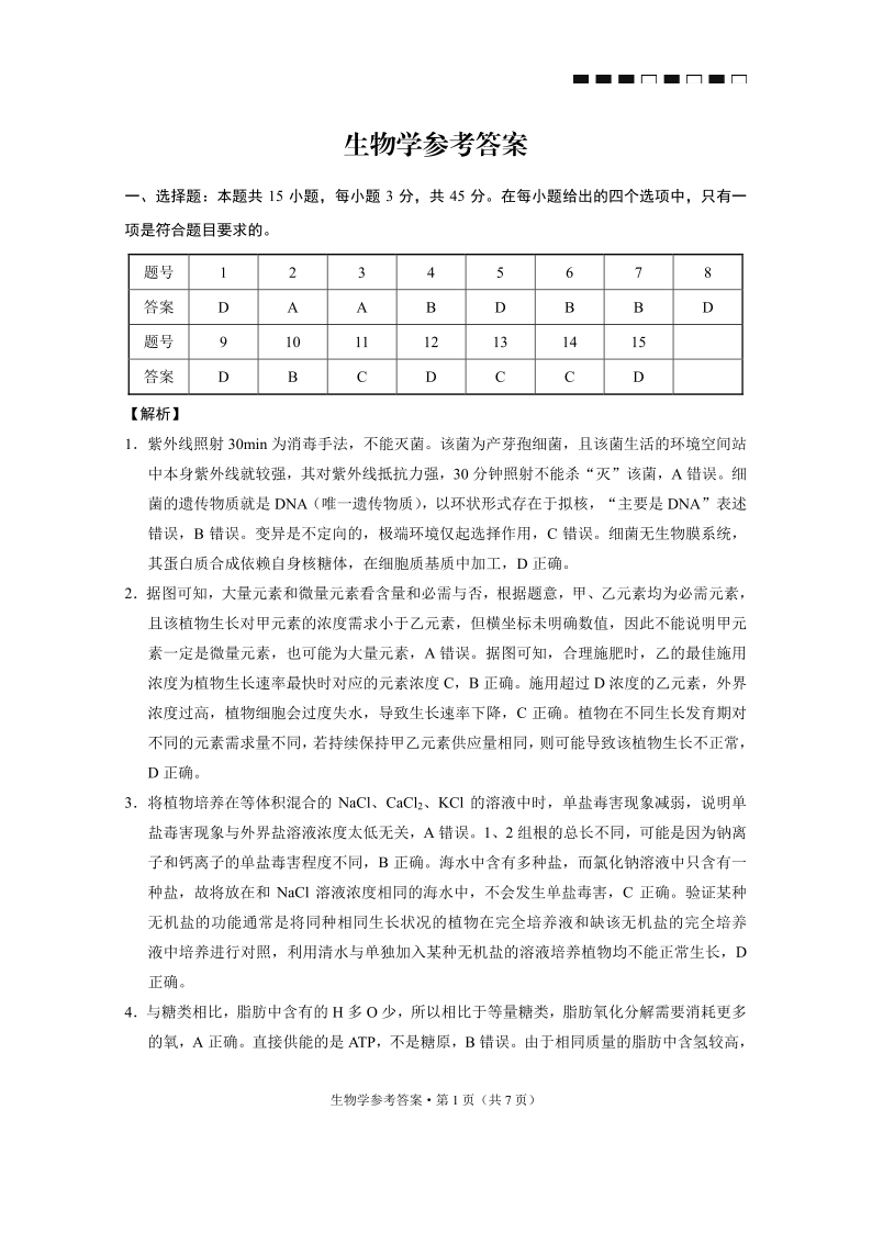 高三生物答案--重庆市巴蜀中学2026届高考适应性月考卷(一)