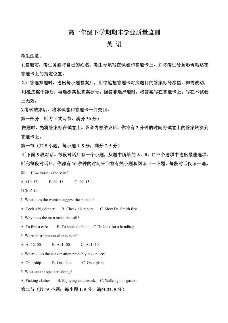 高三英语+答案--河南省濮阳市2024-2025学年高一下学期7月期末考试