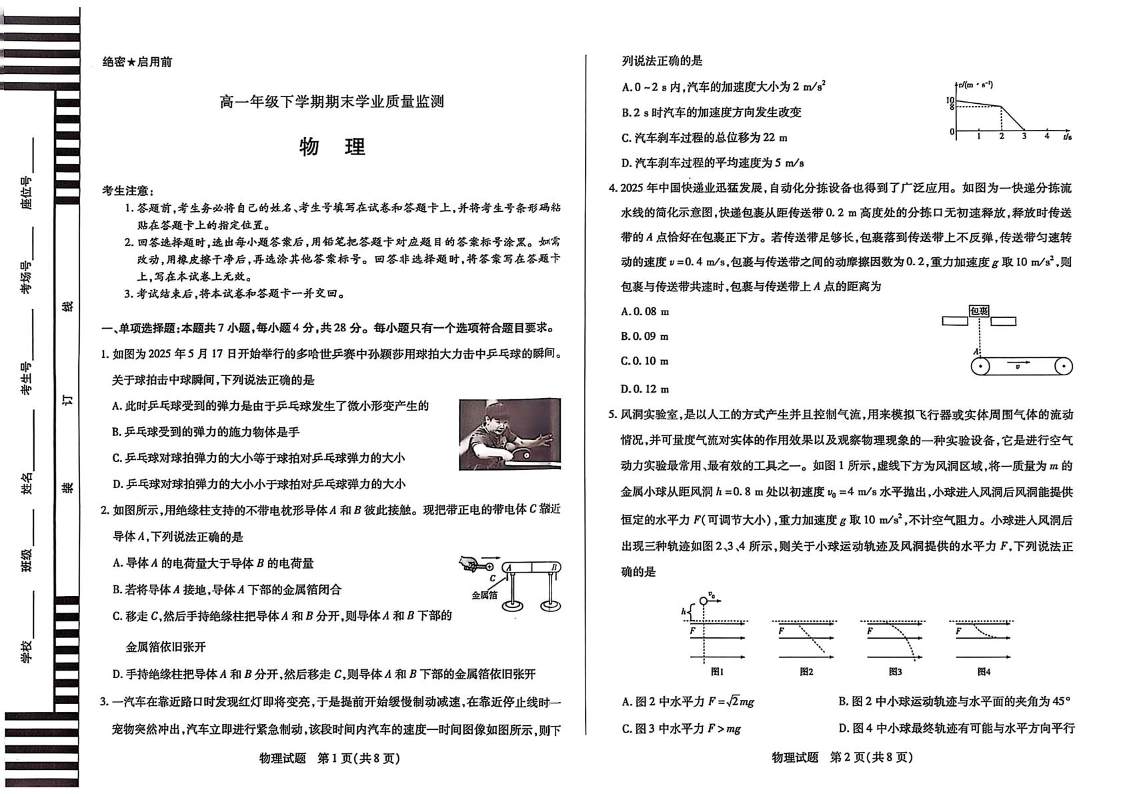 高三物理+答案--河南省濮阳市2024-2025学年高一下学期7月期末考试