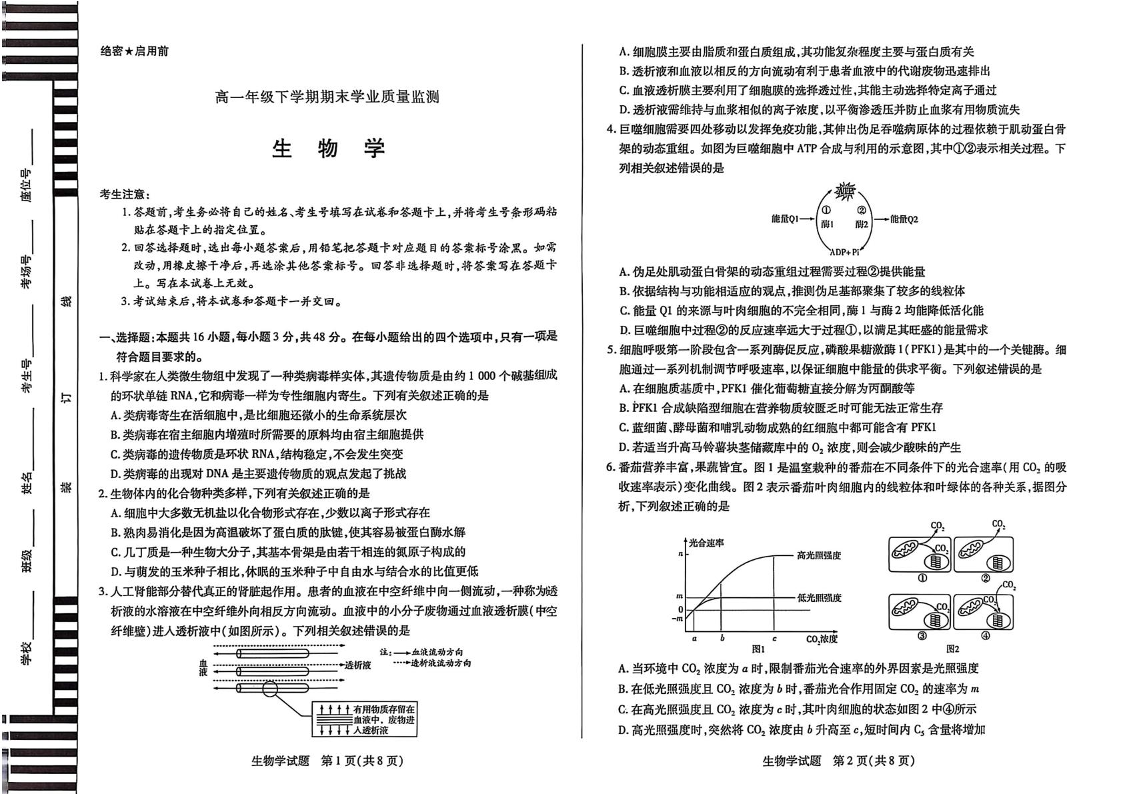 高三生物+答案--河南省濮阳市2024-2025学年高一下学期7月期末考试