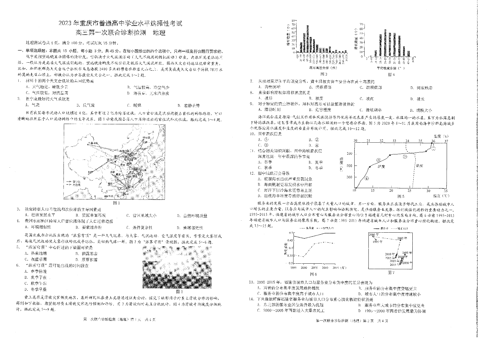 高三地理--重庆一诊康德卷2023年普通高等学校招生全国统一考试