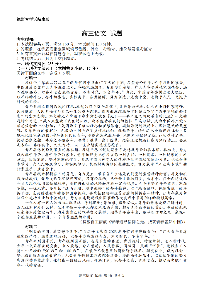 高三语文--浙江省金丽衢十二校、七彩阳光等校2022-2023学年高三下学期3月联考