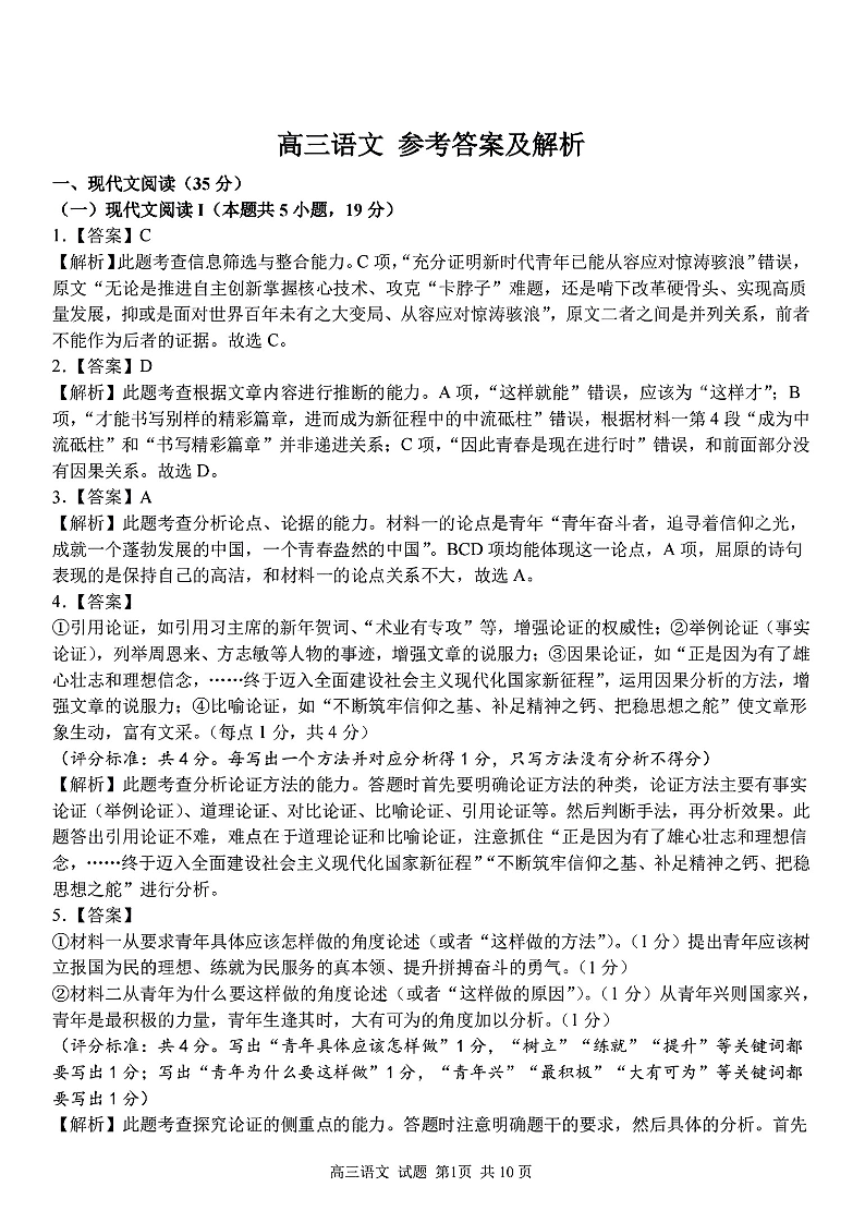 高三语文答案--浙江省金丽衢十二校、七彩阳光等校2022-2023学年高三下学期3月联考
