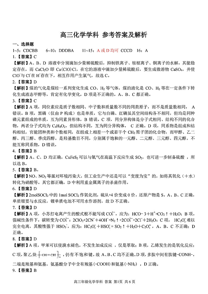 高三化学答案--浙江省金丽衢十二校、七彩阳光等校2022-2023学年高三下学期3月联考