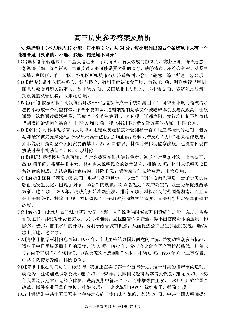高三历史答案--浙江省金丽衢十二校、七彩阳光等校2022-2023学年高三下学期3月联考