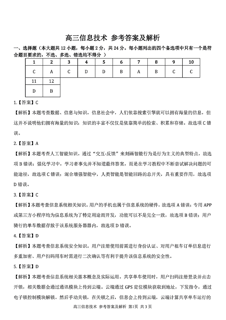 高三信息技术答案--浙江省金丽衢十二校、七彩阳光等校2022-2023学年高三下学期3月联考