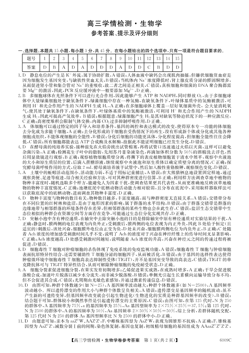 高三生物答案--安徽省县中联盟2026届高三上学期8月学情检测