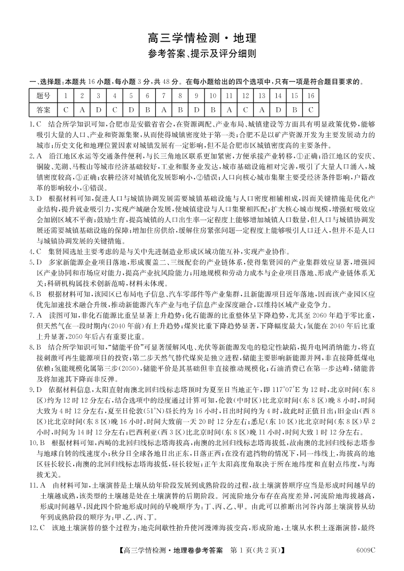 高三地理答案--安徽省县中联盟2026届高三上学期8月学情检测