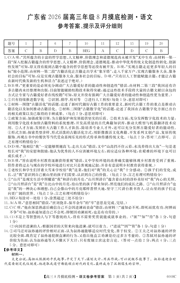 高三语文答案--广东省纵千文化2026届高三8月摸底检测