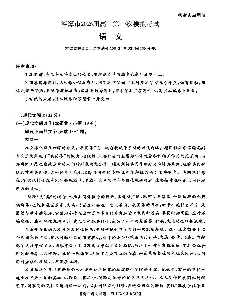 高三语文--湖南省天壹名校联盟2026届高三8月入学考试