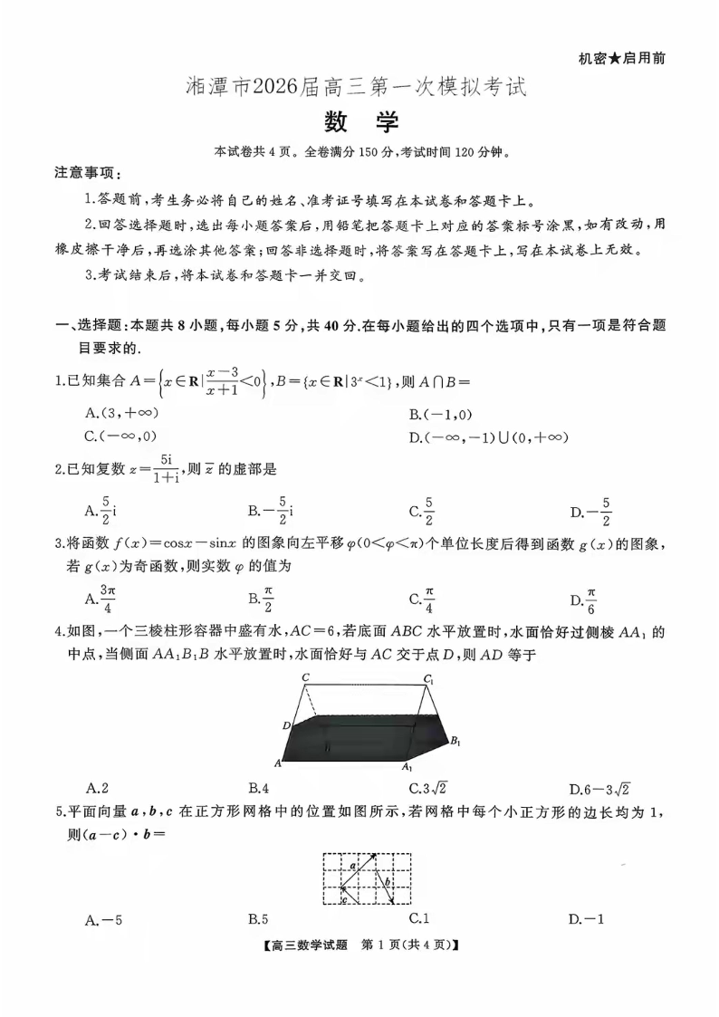 高三数学--湖南省天壹名校联盟2026届高三8月入学考试