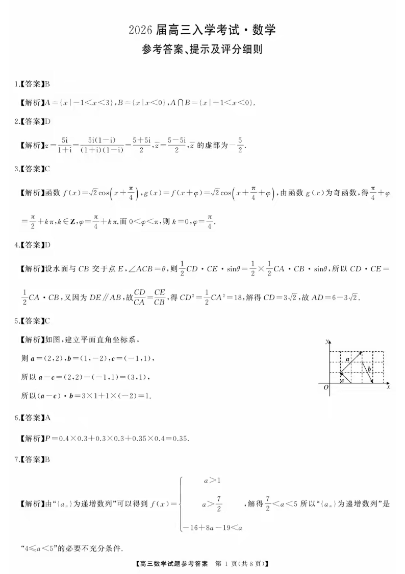 高三数学答案--湖南省天壹名校联盟2026届高三8月入学考试