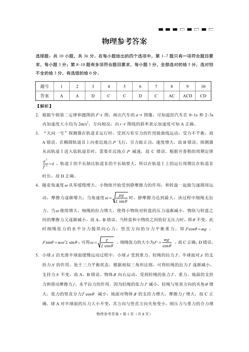 高三物理答案--重庆市巴蜀中学2026届高考适应性月考卷(一)