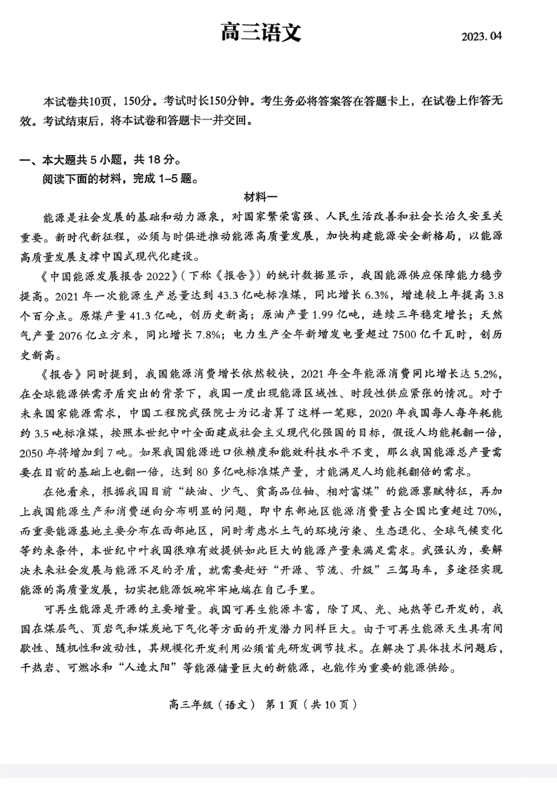 高三语文--北京市海淀区2023年高三一模