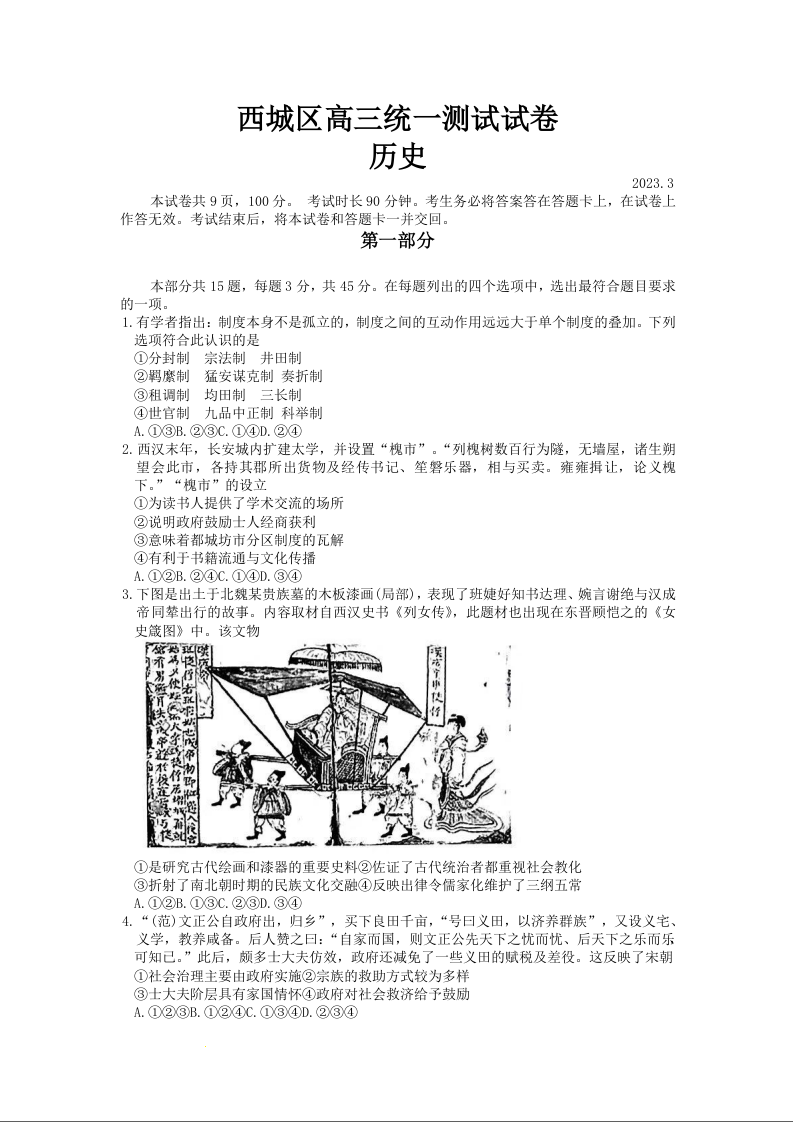 高三历史--北京市西城区2023高三一模