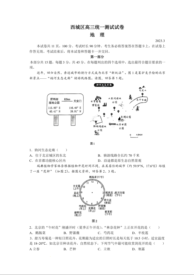 高三地理+答案--北京市西城区2023高三一模
