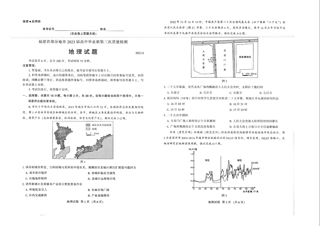 高三地理+答案--福建省2023高中毕业班4月适应性练习