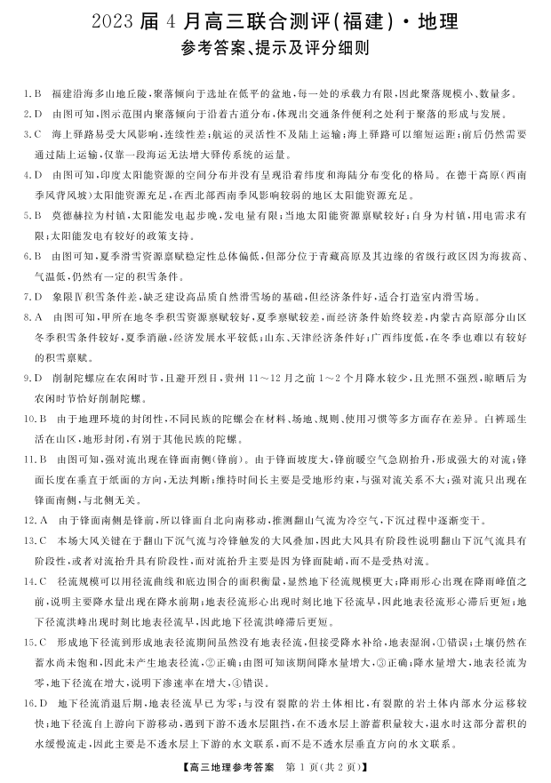 高三地理答案--福建省2023届高三4月联合测评百校联盟