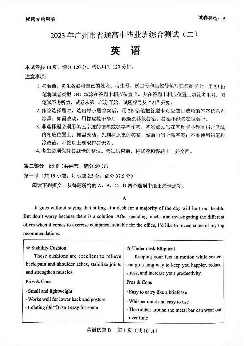 高三英语--广东省广州市2023年普通高中毕业班综合测试(二)(广州二模