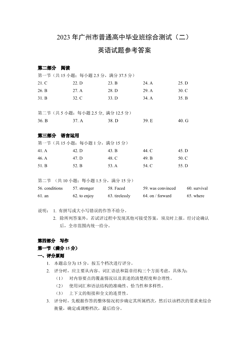 高三英语答案--广东省广州市2023年普通高中毕业班综合测试(二)(广州二模
