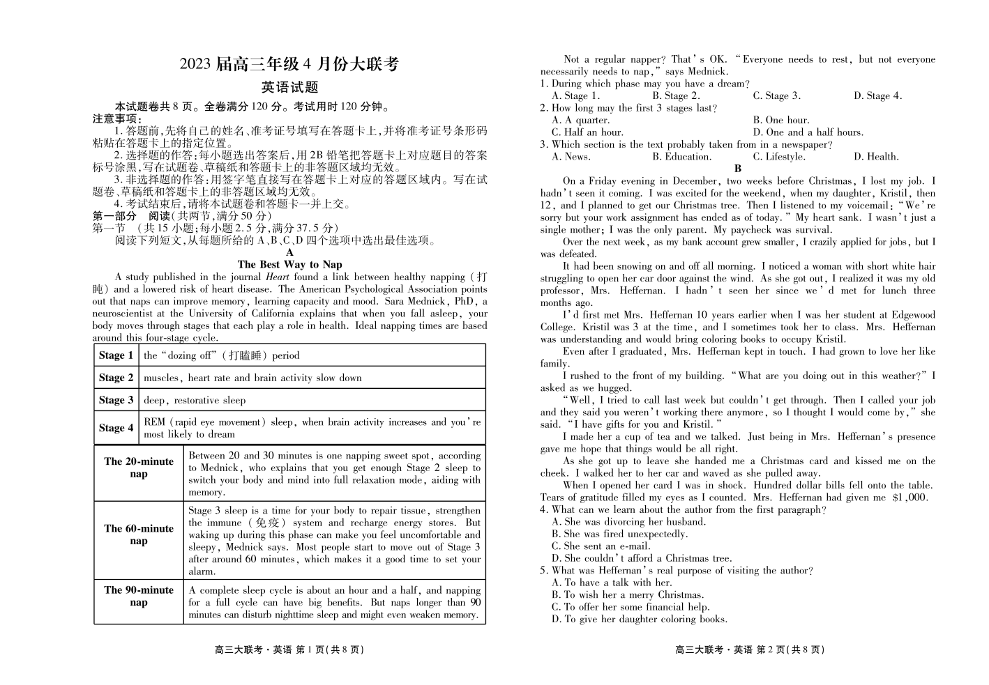 高三英语--广东省衡水金卷2023届高三年级4月份大联考