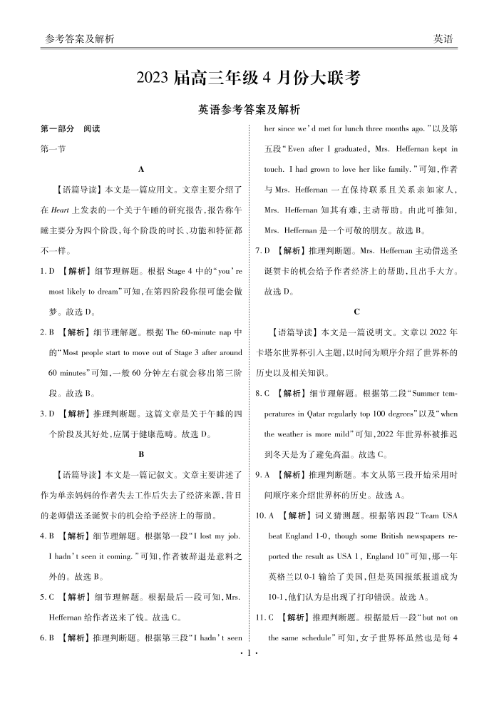 高三英语答案--广东省衡水金卷2023届高三年级4月份大联考
