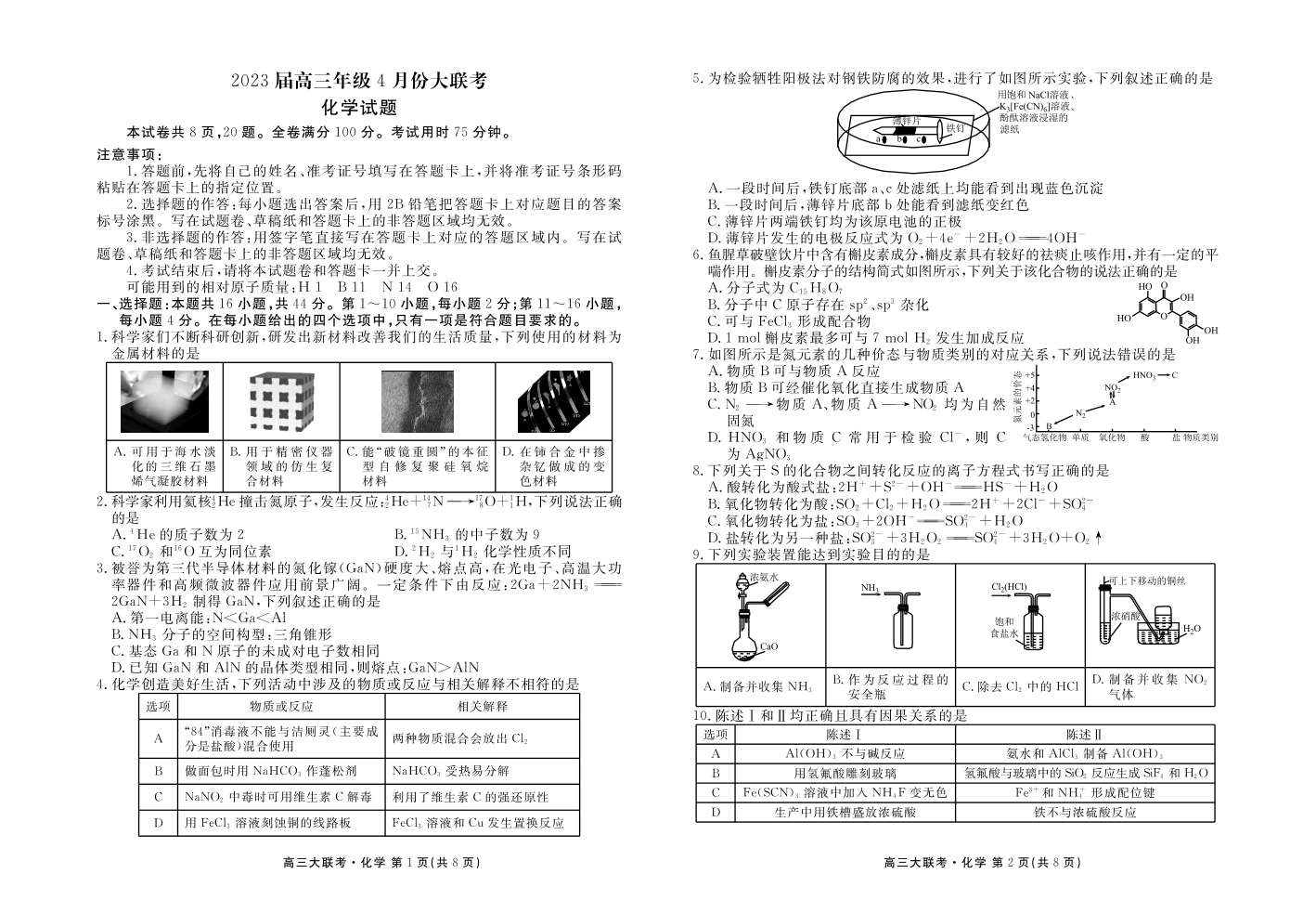 高三化学--广东省衡水金卷2023届高三年级4月份大联考