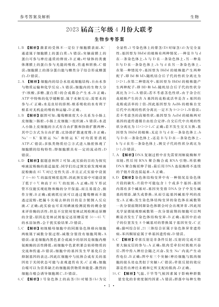 高三生物答案--广东省衡水金卷2023届高三年级4月份大联考
