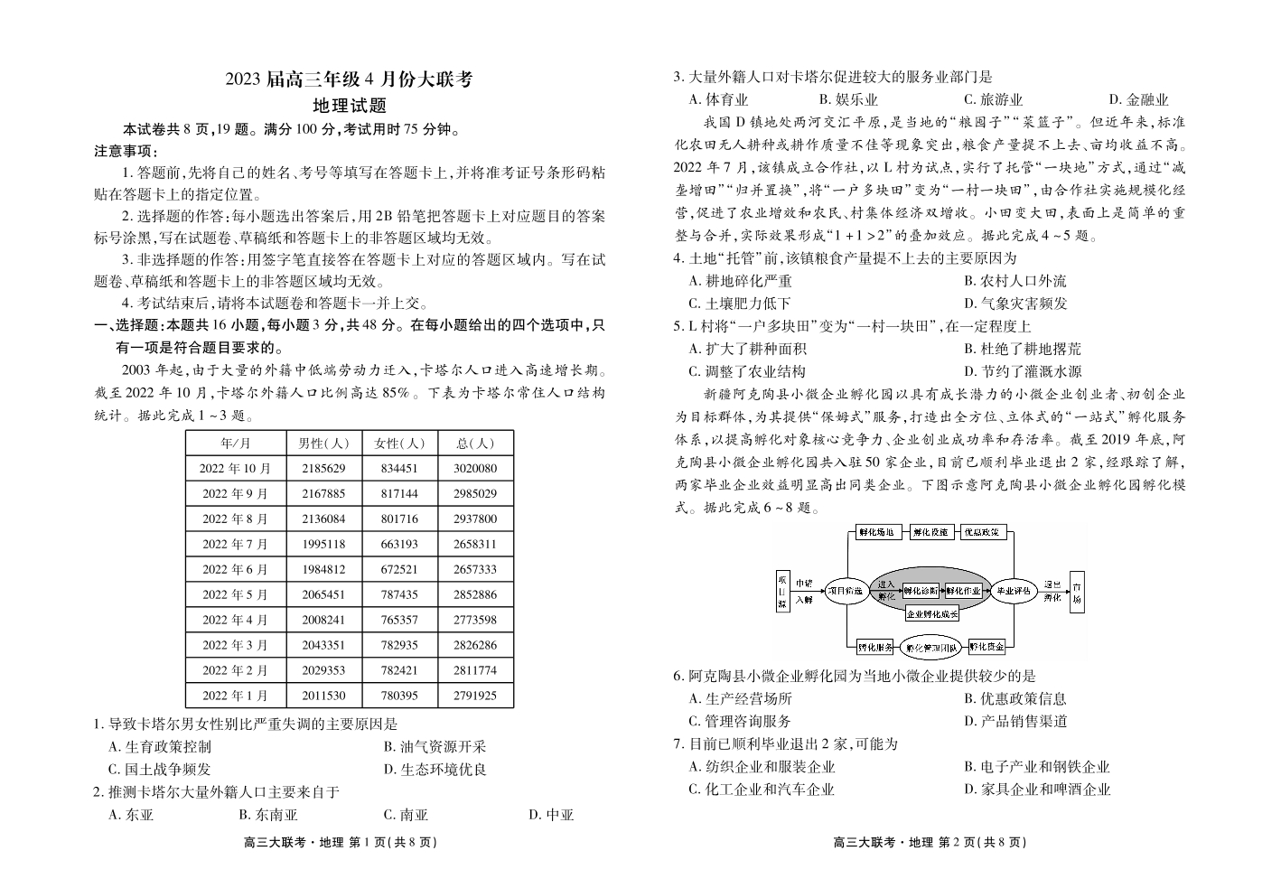 高三地理--广东省衡水金卷2023届高三年级4月份大联考