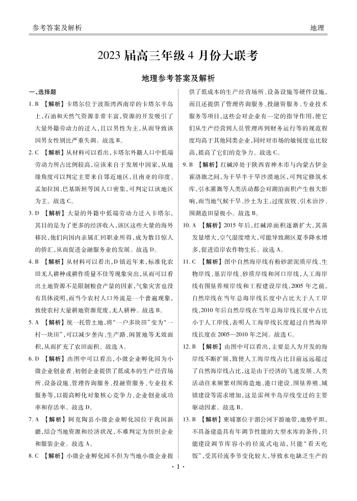 高三地理答案--广东省衡水金卷2023届高三年级4月份大联考