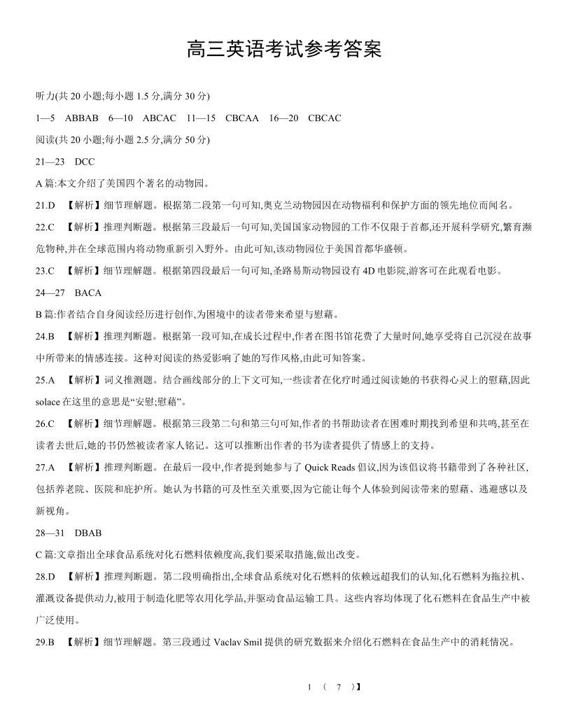 高三英语答案--江西省2026届高三上学期8月百万金太阳大联考