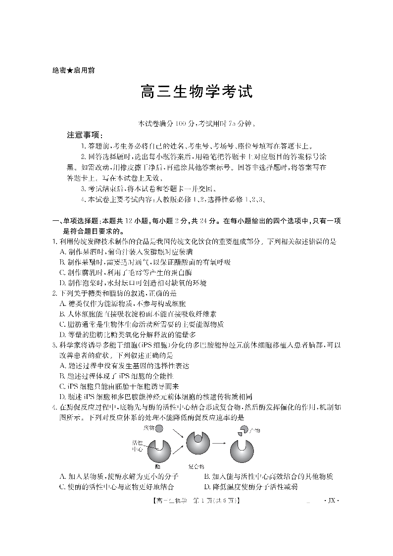 高三生物--江西省2026届高三上学期8月百万金太阳大联考