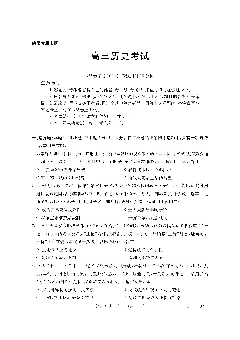 高三历史--江西省2026届高三上学期8月百万金太阳大联考