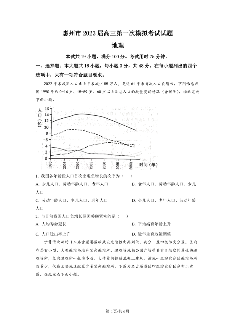 高三地理(原卷版)--广东省惠州市2023届高考一模考试(惠州一模)