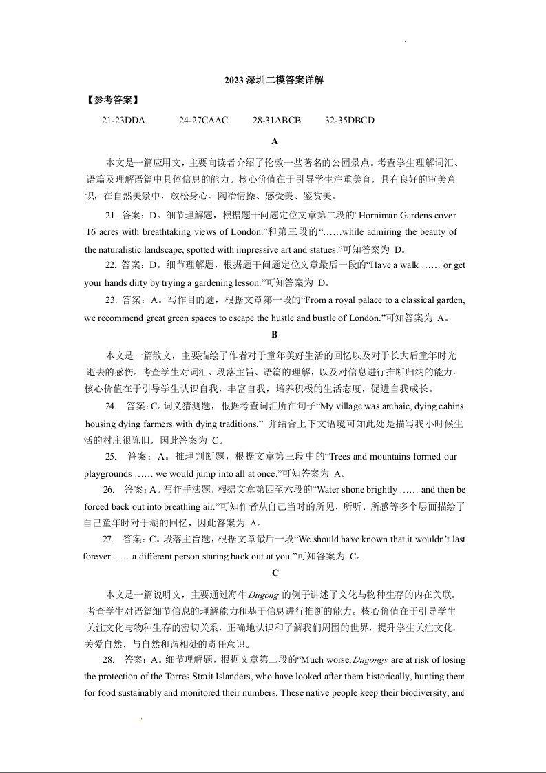 高三英语答案--广东省深圳市2023高三年级第二次调研考试(深圳二模)