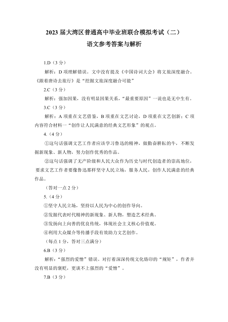 高三语文答案--广东省粤港澳大湾区2023普通高中毕业班联合模拟考试(二)