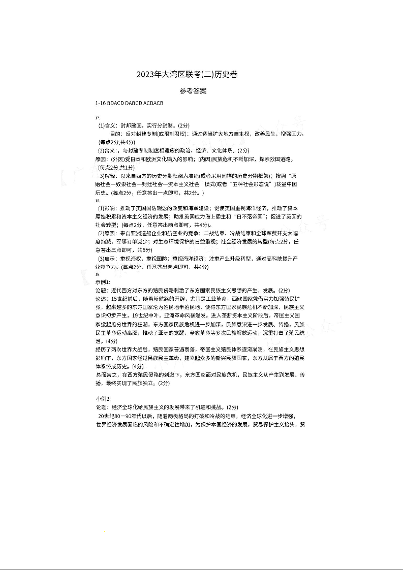 高三历史答案--广东省粤港澳大湾区2023普通高中毕业班联合模拟考试(二)