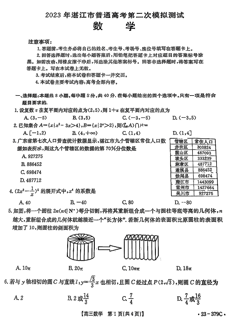 高三数学+答案--广东省湛江市2023届高考二模(23-379C)(湛江二模)