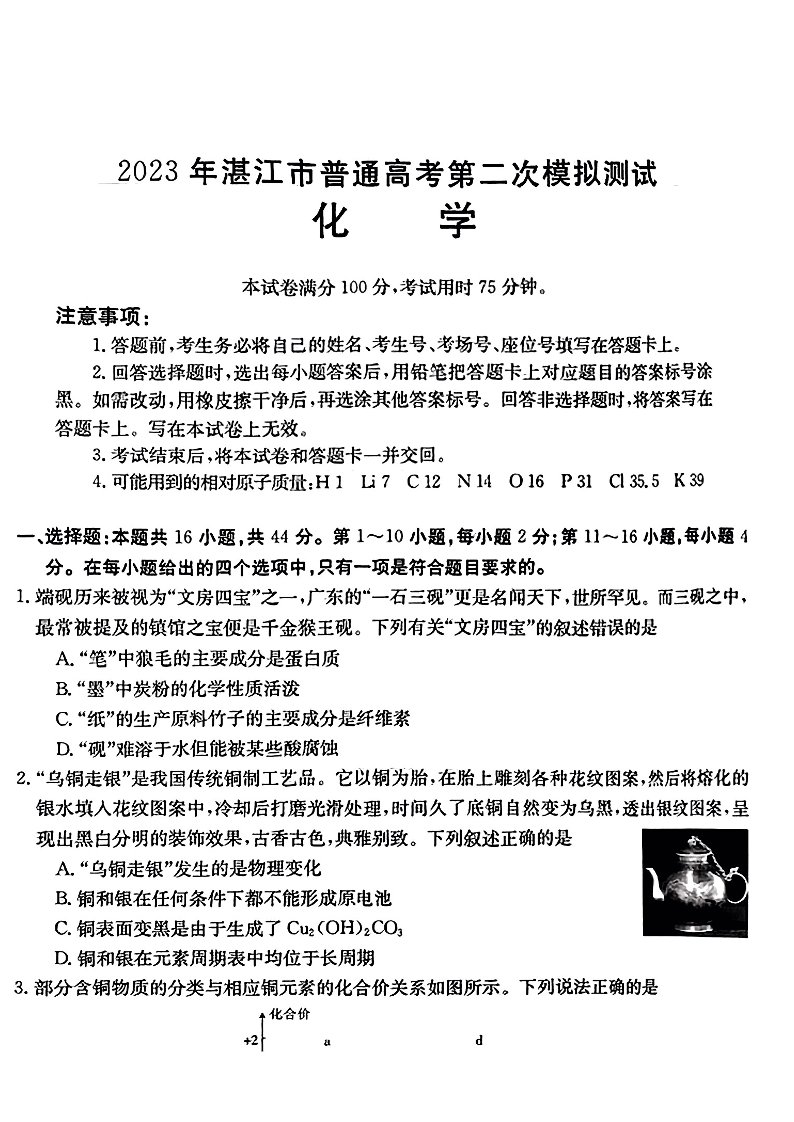 高三化学--广东省湛江市2023届高考二模(23-379C)(湛江二模)