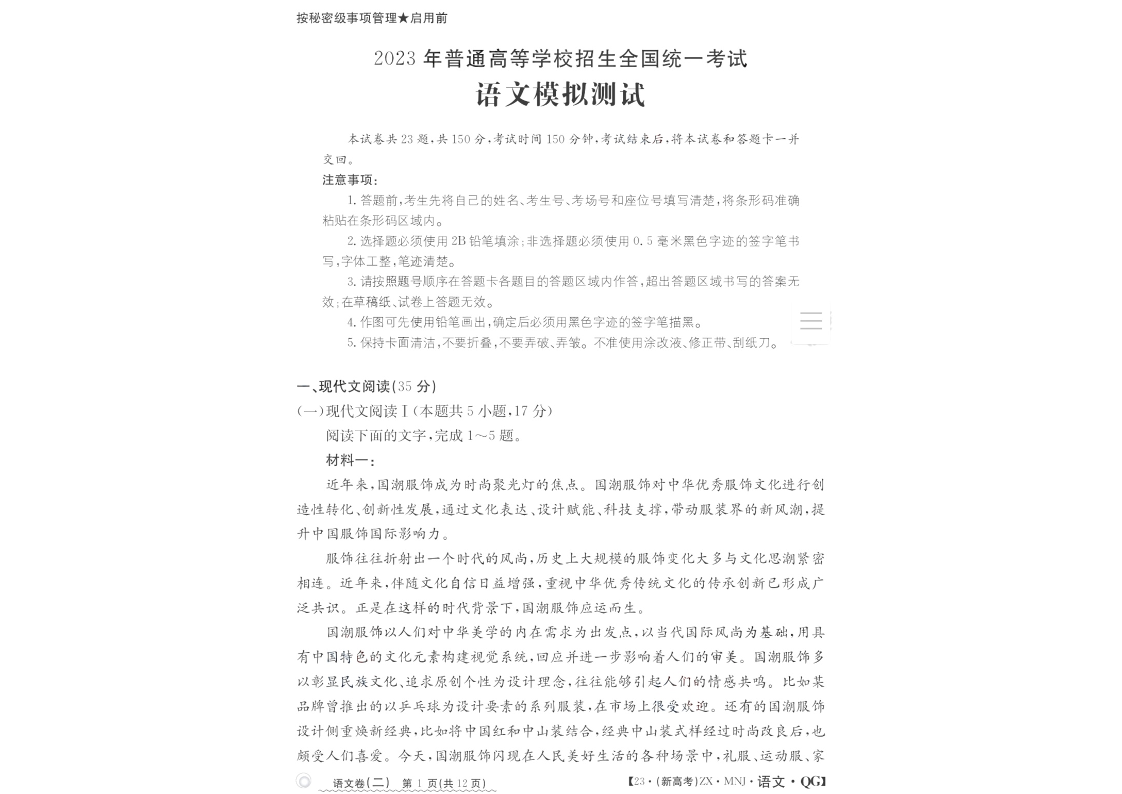 高三语文+答案--海南省2023届高三下学期普通高中学业水平选择性模拟考试(二)