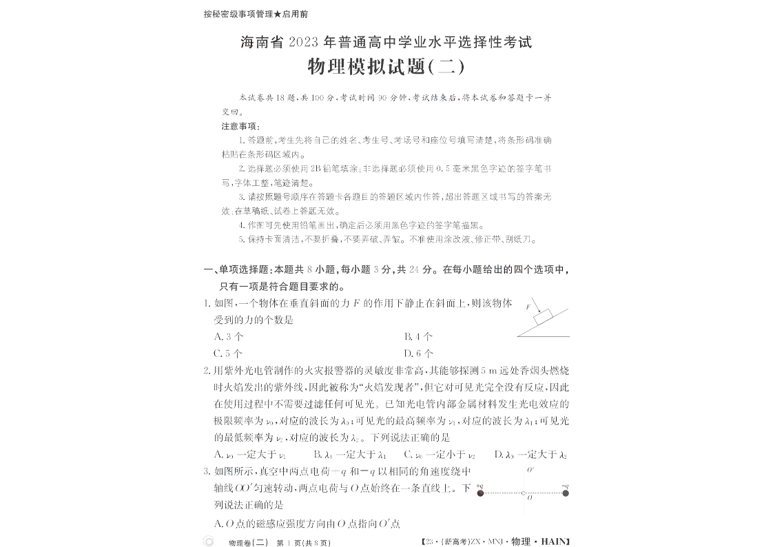 高三物理+答案--海南省2023届高三下学期普通高中学业水平选择性模拟考试(二)