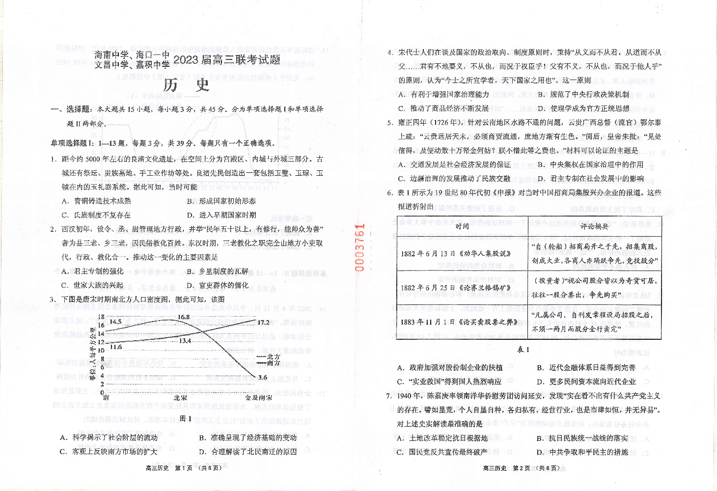 高三历史--海南省海南中学、海口一中、文昌中学、嘉积中学四校2023届高三下学期4月联考