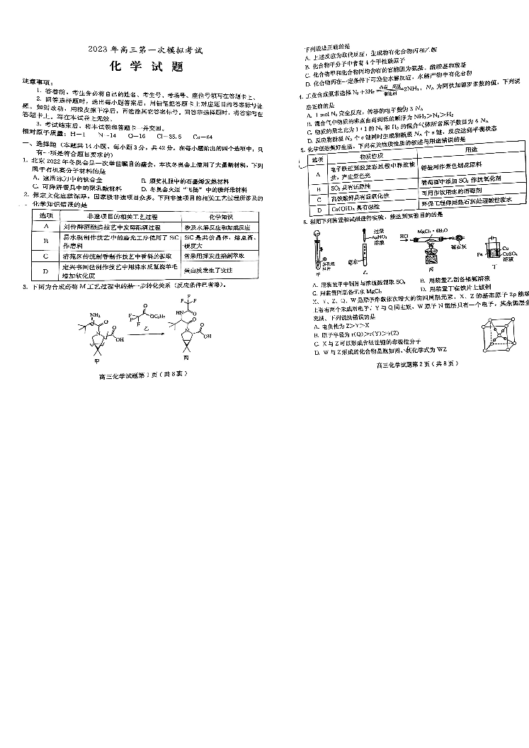 高三化学+答案--河北保定2023年高三第一次模拟考试(保定一模)