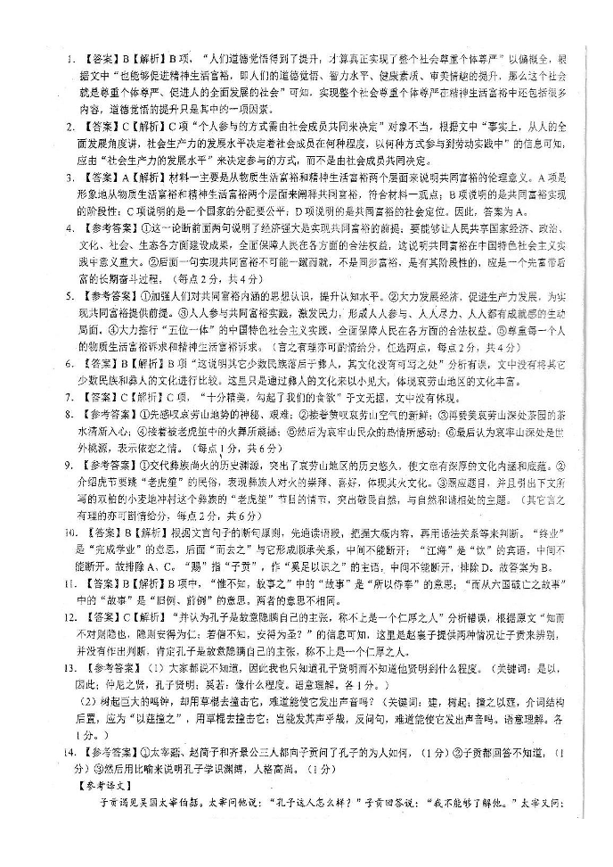 高三语文答案--河北省2023高三第一次高考模拟演练