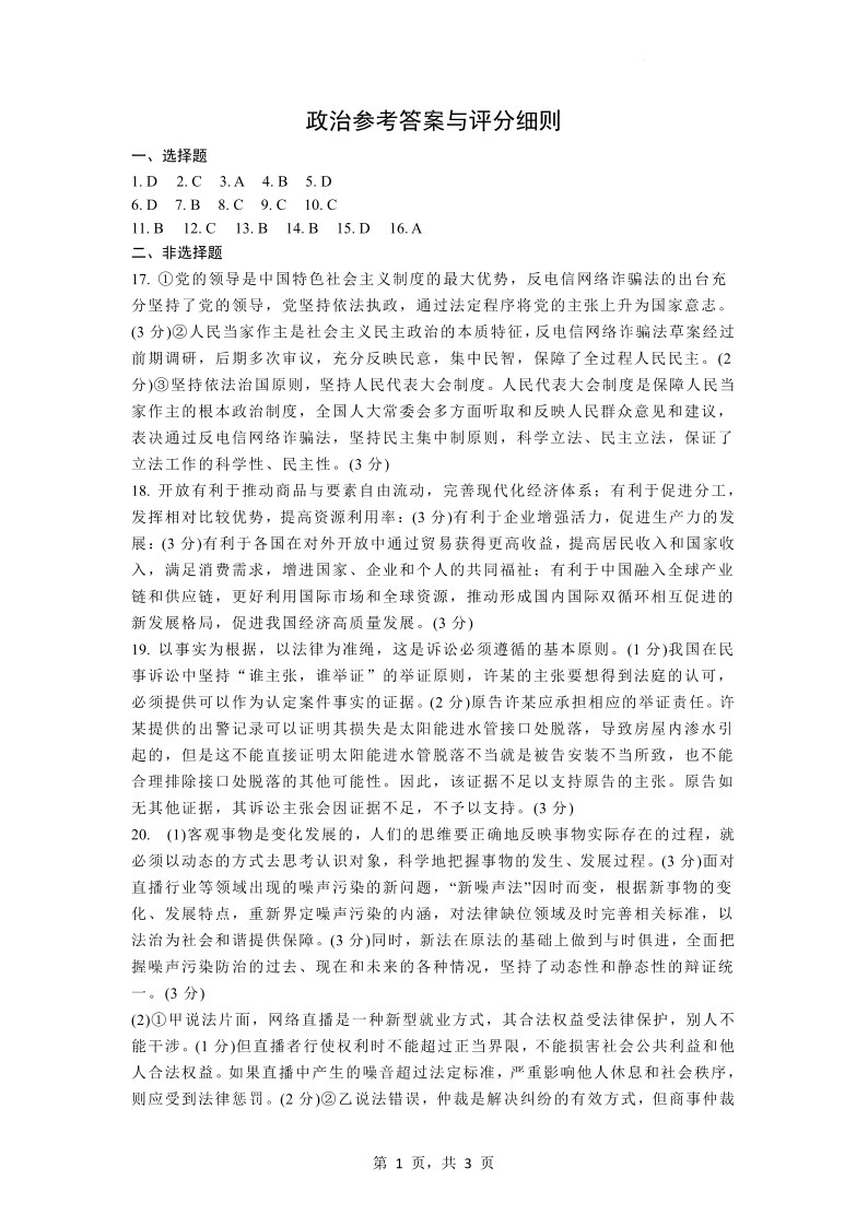 高三政治答案--河北省2023届高三第二次高考模拟演练(河北二模)