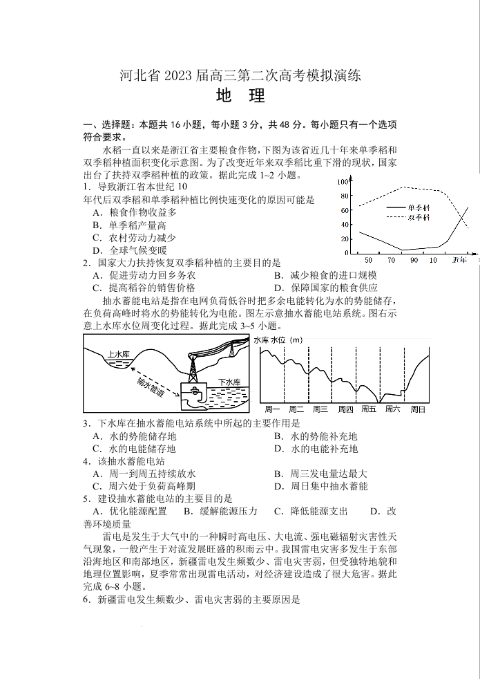 高三地理--河北省2023届高三第二次高考模拟演练(河北二模)