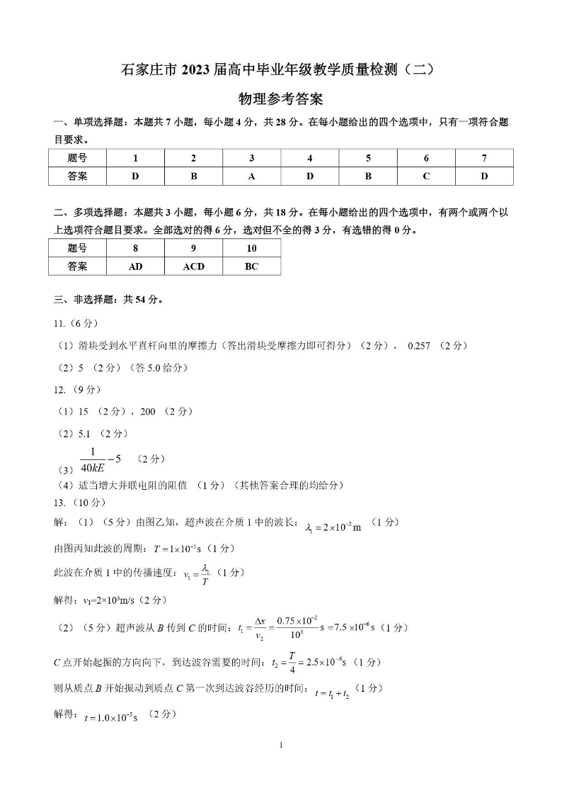 高三物理答案--河北省石家庄市2023届高中毕业年级教学质量检测(二)(石家庄二模)