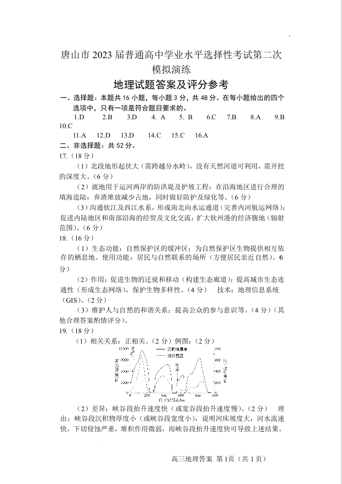 高三地理答案--河北省唐山市2023届普通高中学业水平选择性考试第二次模拟演练(唐山二模)