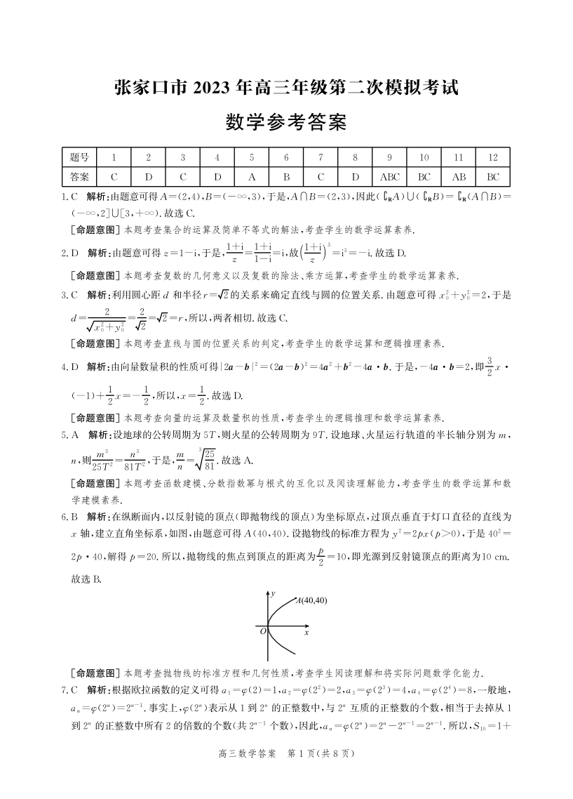 高三数学答案--河北省张家口市2023届高三二模